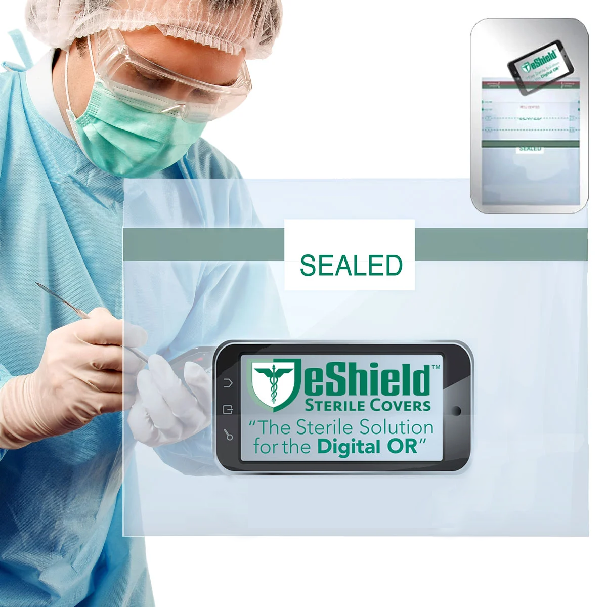 eShield® will enclose phones so they can be conveniently positioned for the surgeon’s direct control from the surgical table. This real solution for a real problem aids patients by limiting interruptions and delays in the OR and saves money by eliminating the need to re-glove.